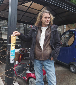 Card players taking a break outside the James Bay New Horizons Activity Centre. An Ash Can installed by Surfrider Foundation Vancouver Island Chapter. The Ash Can is to help reduce the amount of cigarette butt litter. Cigarette butts will be collected and combined with the butts being collected and recycled by the Clean Team of downtown Victoria through the Hold Onto Your Butt campaign. So far, over 130,000 cigarette butts have been diverted as a result of that campaign. Cigarette butts are sent away to be recycled into industrial plastic.