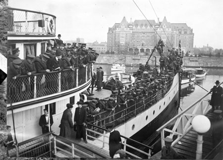 SS Princess Victoria: troops leaving Victoria for the Great War Image D-04766 courtesy of Royal BC Museum and Archives |