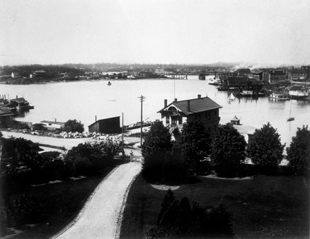 Then... James Bay Athletic Association clubhouse at the foot of Menzies Street. Built in 1891 for $7000 the 4500 sq. ft. main clubhouse housed offices, meeting rooms and gymnasium-cum-dance floor. Attached was a 2400 sq. ft. floating boathouse. The property was sold to the C.P.R. in 1927 and J.B.A.A moved to a property on the Gorge that better suited the varied athletic pursuits of its growing membership.