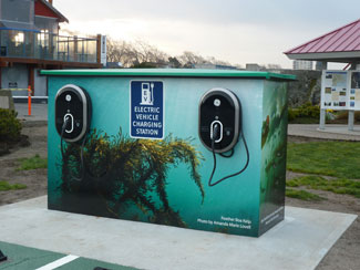 One of Victoria's newest electric vehicle charging station was installed at Ogden Point in James Bay this spring. This brings the total in the city to 11 and counting! For other charging station locations see the city website.