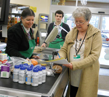 Helen Parker, in her sixth year of Sendial at Thrifty Foods community service program, offering telephone shopping and delivery of fresh groceries for customers prevented from in-store shopping by long term and short term disabilities, is one of James Bay Community's many committed volunteers. Helen takes care of the store team with two or three telephone operators plus shoppers who vary in number. Shopping for others is not an easy task. Time and patience are needed to provide quality service and the continuity of committed volunteers helps to keep customer communication a friendly service.