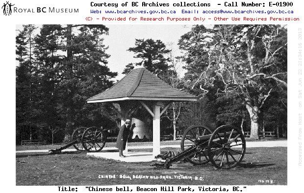 Janis Ringuette, "Beacon Hill Park History" - Chapter 8 - 1900-1909, 2004; Barry Till, "Relic from a Distant Temple: Victoria's Chinese Bell," Art Gallery of Victoria, 1992; City of Victoria, "Frequently Asked Questions", 2012.