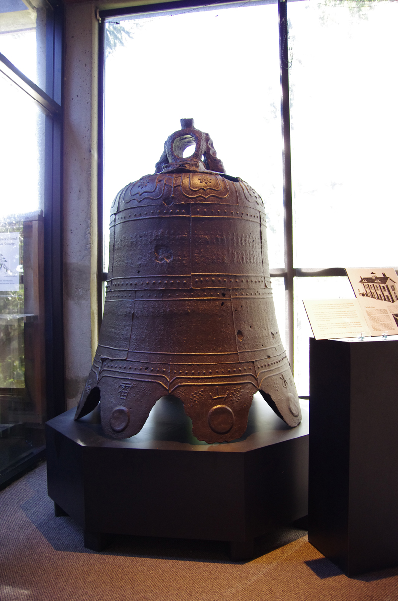 Originally the temple bell of the White Rose Buddhist Convent of the district of Foo Ning, China, it was looted by British troops during the Boxer Rebellion (1900-1901). Lt WB Macdonald of the HMS Pique presented the bell to the City of Victoria in 1903.