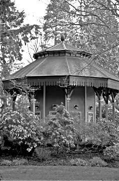 From the days of the first arrivals of white people, the area of land we know as Beacon Hill Park was recognized as something to be cherished. Officially established as a public park in 1859, it was already a place of recreation for the first settlers. Horse racing (gambling), cricket, croquet, picnicking to the sounds of naval and local bands and orchestras played a large part in the local culture. In 1887 a plan was approved for the building of a bandstand. The result, as believed to appear in the attached picture, was completed in 1888, located to the west of Circle Drive. Its cost was three hundred dollars. Tables and benches were grouped around for the benefit of the audience. Twelve years later the bandstand was moved to enhance the charming and quaint appearance of the stone bridge and Goodacre Lake. It served as a bandstand until 1927 when it was converted to an aviary. It served in this capacity until 1989. After ending its time as a birdhouse, the structure fell into disuse and decay.