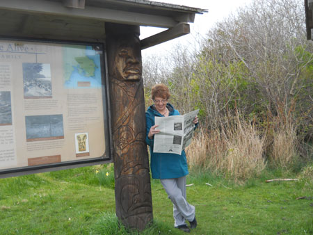Brenda Schwer is visiting Victoria and Peekin' at the Beacon at Cattle Point at the First Nations Totem Pole information site.