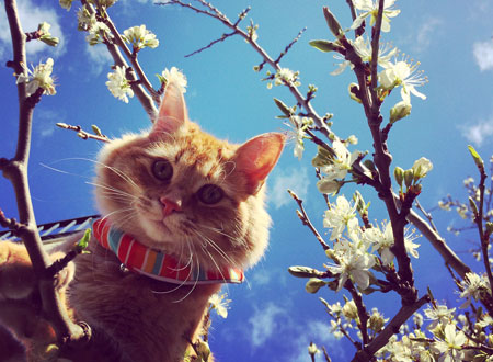 We’d gotten into a great routine with our fluffy, orange, 10-month-old cat Pistol Pete. He’d wake us up around 6am (often by knocking books off the bedside table – no one’s perfect), we’d slip him into his anti-bird-hunting collar, and let him outside where he’d catch bugs in the yard and watch the dogs walk by. An hour or so later he’d saunter in through his cat door looking for breakfast and would spend the day inside while we were at work. In the evening he’d go out again until we whistled for dinner when he’d come racing up the garden path.