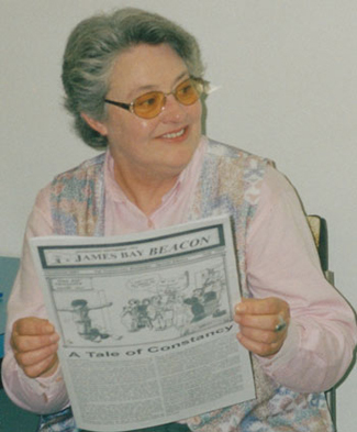 It would not be an exaggeration to say that, notwithstanding the tremendous effort that Tim Padmore and Caroline Griese and others, put into the paper, Constance was the backbone. She was the volunteer coordinator extraordinaire, manning the phones, coaxing and cajoling writers, photographers, proofreaders, and steady hands to cut and paste. She was tireless in her effort to bring people into the Beacon community. Without her indomitable spirit, the James Bay Beacon might not exist today.