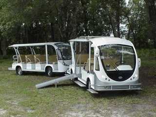 James Whitney, of Pro-Motion Electric Ltd., has proposed that small low-speed electric-powered vehicles be used for the cruise-passenger shuttle service. The vehicles' electric motors receive power boosts from solar panels mounted on the roof. These vehicles operate at speeds of 35-40 kph and are permitted on roads that have a 50 kph speed limit.